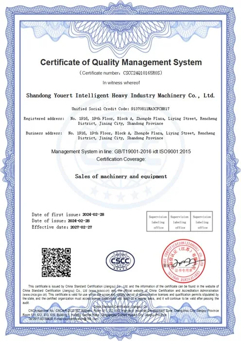Shandong Youert Intelligent Heavy Industry Machinery Co., Ltd. is a machinery manufacturing enterprise, a modern enterprise integrating manufacturing, international trade, development, production, and sales. There are more than 500 employees