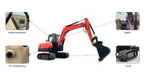 The 8TON large excavator has become the first choice of engineers for its excellent fuel economy and enhanced power. With the FEm electronically controlled hydraulic system, this model has achieved an amazing 73% saving in reducing fuel consumption, pursuing high fuel efficiency. The full hydraulic signal control design of the main valve of the hydraulic pump makes the action faster, further improving work efficiency and benefits.